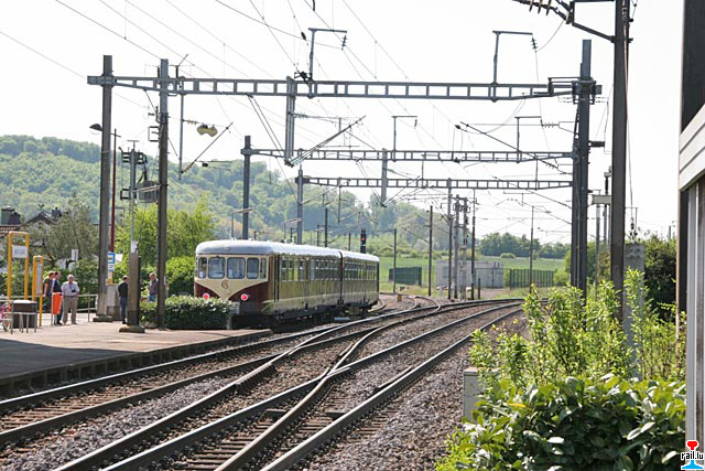 Der Museumstriebwagen Westwaggon Z208 zwecks Ausbildungen, im Plandiensteinsatz auf der Strecke Noertzange - Rumelange, hier in Tétange (Photos: 7.5.2008 Nicolas Armand)