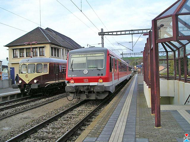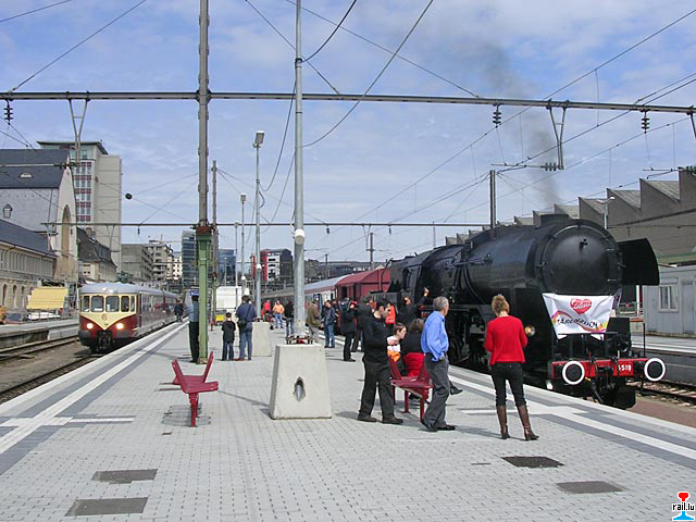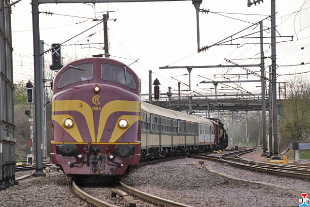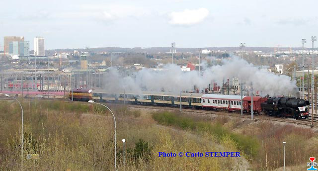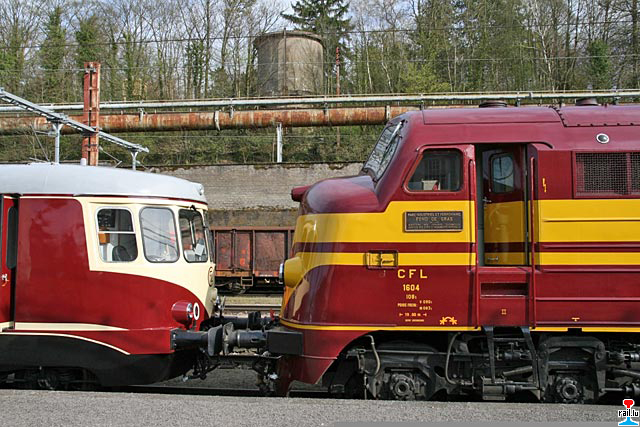 Einfahrt der Diesellok 1604 und der Dampflok 5519 in den Bahnhof Bettemburg (Fotos: 20.4.2008 Marc Schomer)