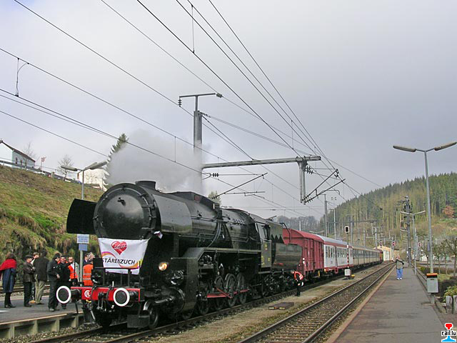 Télévie Stärenzuch mat der Dampflok 5519 an der Diesellok 1604 um Houwald (Fotos: 20.4.2008 Carlo Stemper)
