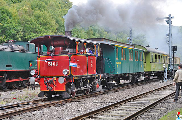 La Cockerill 503 en charge de la remorque Decauville sur les navettes Fond-de-Gras – Rodange (Photo: