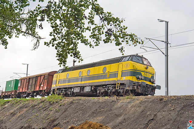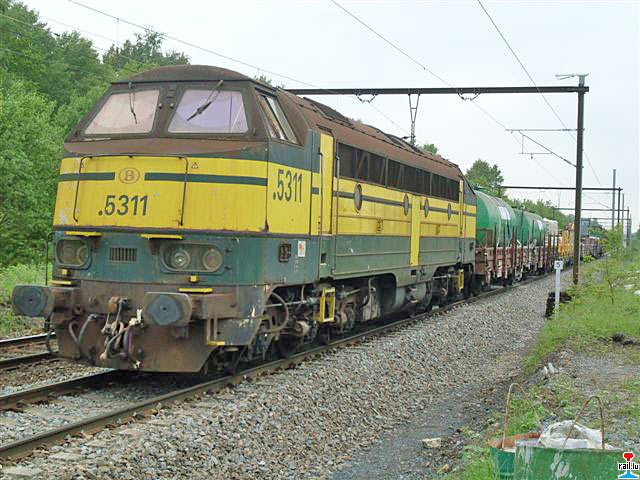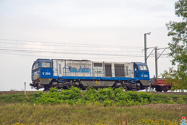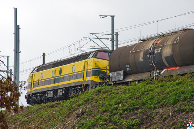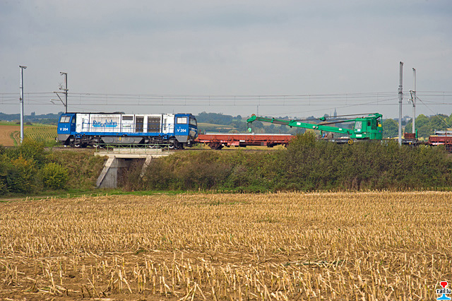 204 de la RurTalbahn remorquant le train de câblage d'Infrabel sur