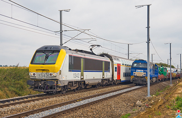 2135 remorqué par la BB1342 aux portes d'accès vertes croise