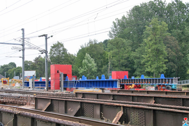 Travaux d'assemblage du nouveau pont sur l'Alzette à Ettelbruck