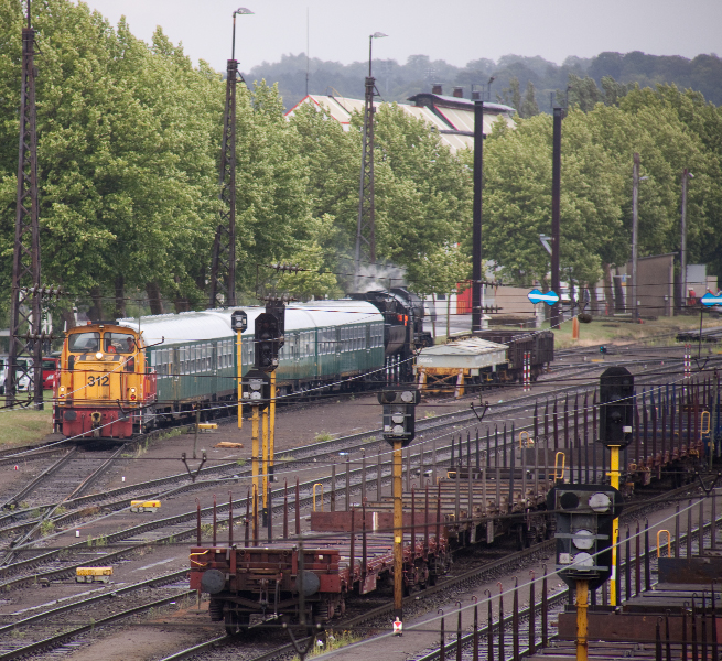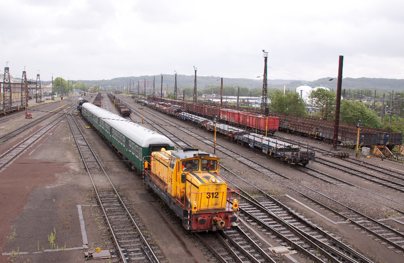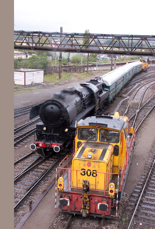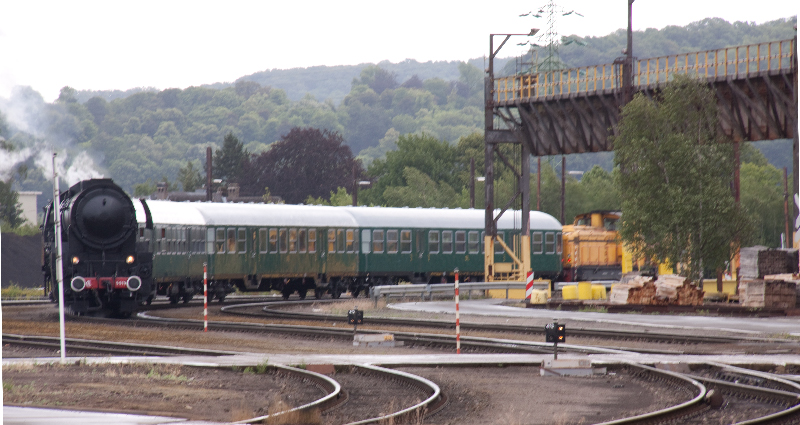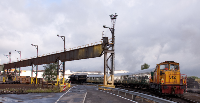 vapeur CFL 5519 vers le réseau de l'usine avec la locomotive 312 de CFL cargo (Photo: 19.6.2011 Séb. Steiner)