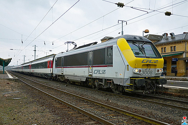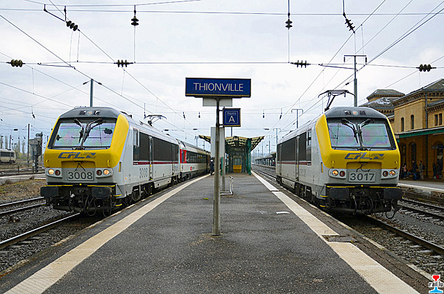 La locomotive CFL 3008 en tête du Vauban cet aprés-midi à Thionville - la CFL 3017 HLP en direction de Luxembourg (Photo: 9.4.2012 Séb Steiner)