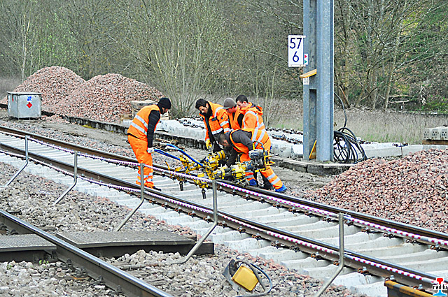 Gleisarbeiten in Goebelsmühle (Photos: 22.04.2012 Tom C.V. Schintgen)