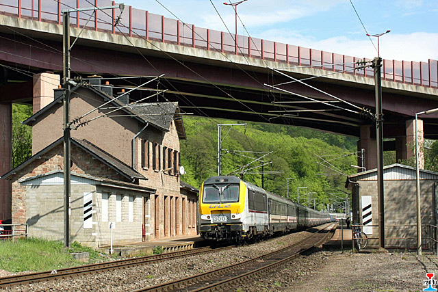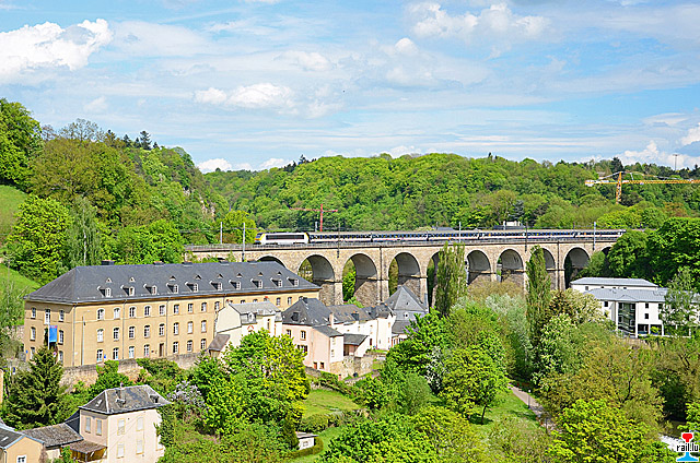 De Sonnerzuch vu Krakau mat der CFL 3003 um Viaduc de Pfaffenthal. De Sonnerzuch mat 1.000 belgschen Schüler vun Krakau aus Polen (wou se d'Konzentratiounslager vun Auschwitz besicht hunn) iwert Nordstreck - Grenz-Gare Gouvy - zeréckgefuer. Den Zuch bestong aus 16 Wén : 12 x SNCB Bc I6 + SNCB WR + 3 x SNCB B I6. (Photos: