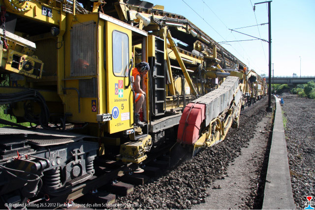 Flankenreinigung des alten Schotterbettes - Gleis Bt-L (Photo: 26.5.2012 Armand Schilling)