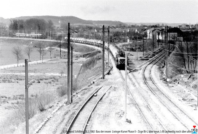Livinger Eisenbahnkurve-1982-1983 - im Bau vor 30-Jahren - L-Bt noch über alte Kurve(Photo: 28.3.2083 Armand Schilling)