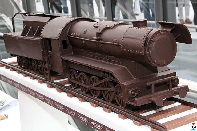 100 Joer Gare Lëtzebuerg - Geburtstagskuchen und CFL 5519 Dampflokomotive aus Schokolade von der Konditorei Oberweis, Luxemburg (Photos: 21.9.2012 jmo)