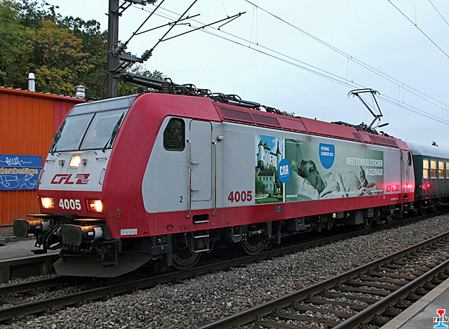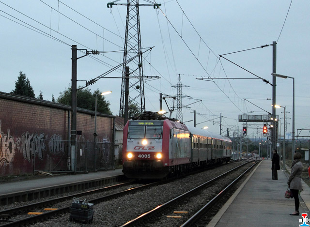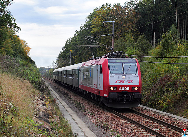 De Mëtten, respektiv den Owend ass d'CFL 4005 mat 2 Wegmänner an dem Rendez-Vous mat engem CIER - Sonnerzuch Waasserbelleg - Péiteng gefuer, hei zou Hollerech (Photos: 9.10.2012 Yves Gillander)