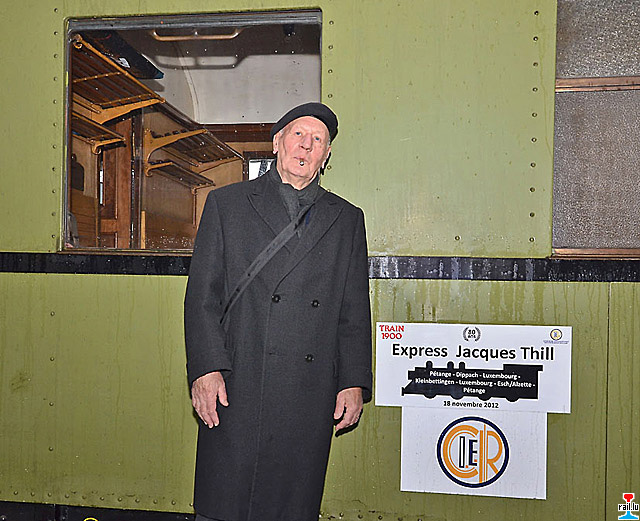 Am Sonntag, den 18. November veranstalteten die Firma CIER und die AMTF-Train 1900 aus dem Fond-de-Gras in Zusammenarbeit mit der 5519 asbl einen Sonderzug zu Ehren von Jacques Thill (Bild), der wenige Tage zuvor seinen 80. Geburtstag gefeiert hatte. Jacques gehörte 1969 zu den Gründungsmitgliedern der AMTF und ist nach 43 Jahren auch heute noch aktiv wie eh und je. Der Zug führte von Petingen via Dippach nach Luxemburg, von wo eine Fahrt nach Kleinbettingen auf dem Programm statt. Die Rückfahrt erfolgte von Luxemburg via Esch nach Rodange. (Photo: 18.11.2012 Francis Wagner)
