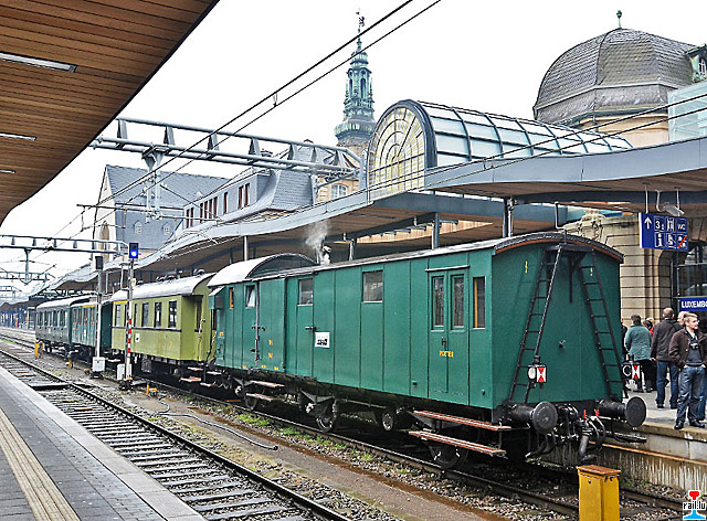 Die Garnitur des Train 1900 vor dem großherzoglichen Pavillon im Bahnhof Luxemburg, wo der obligate Champagner kredenzt wurde. (Photo: 18.11.2012 Francis Wagner)