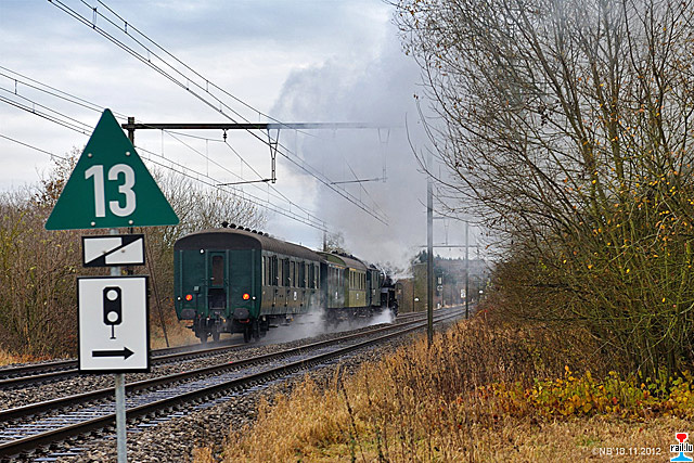 Train spécial C.I.E.R. avec loc à vapeur CFL 5519 et voitures AMTF à Hagen (Photos 18.11.2012 Nico Berté)