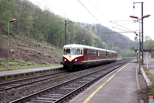 Der Museumstriebwagen Westwaggon Z208 in Cruchten (Photos: 28.4.2013 Guy Pettinger)
