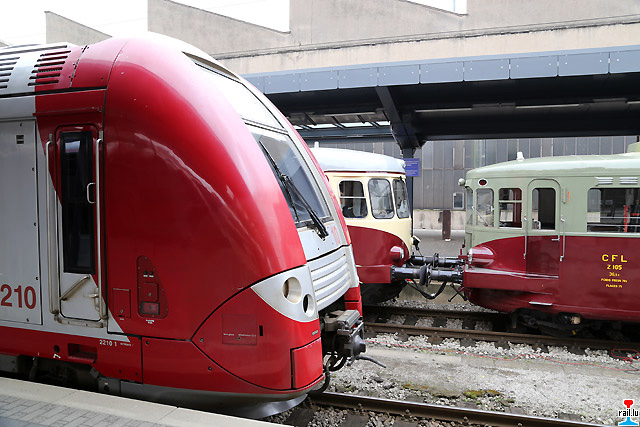 CFL Automotrice 2210, SSMN De Dietrich ex-CFL 105 an SSMN Westwagon ex-CFL 208 an der Gare Lëtzebuerg - 12-13.10.2013 (Photos:
