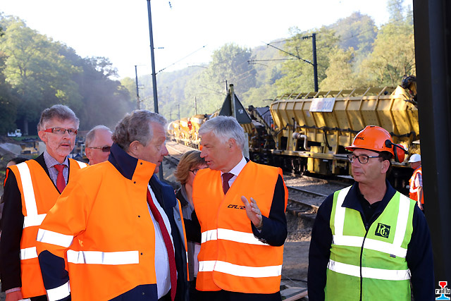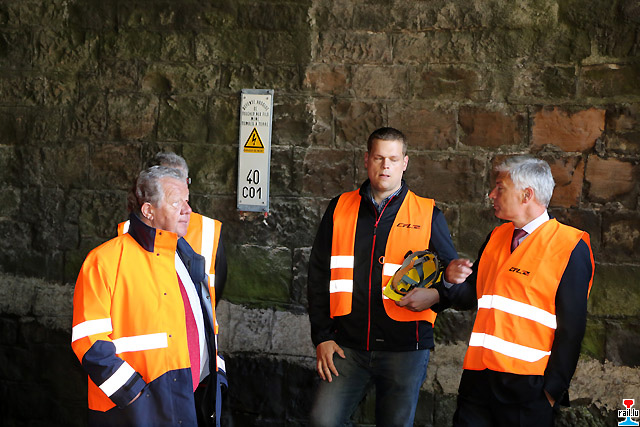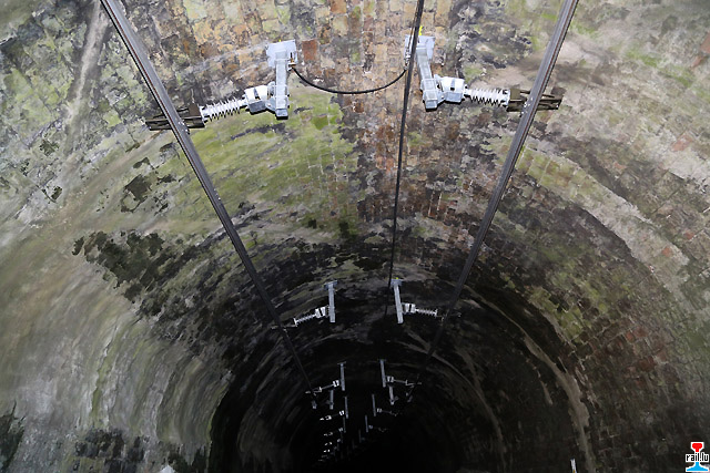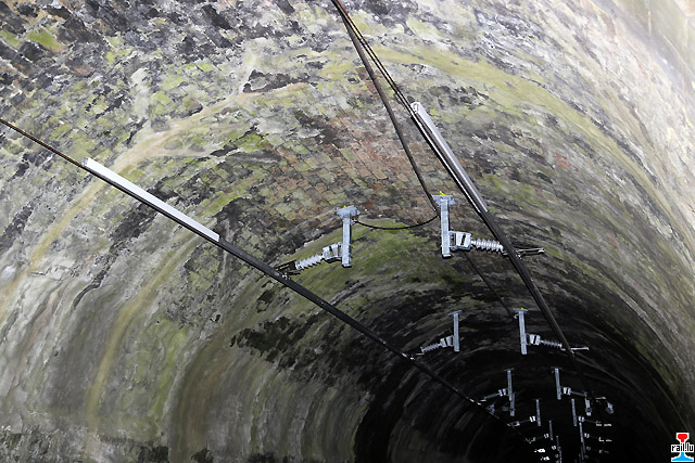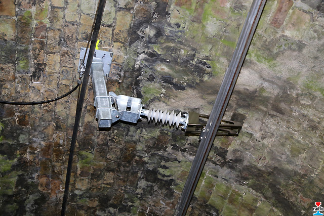 Chantier dans le tunnel de zu Cruchten: pose d'une ligne de contact rigide en vue de continuer à respecter la hauteur minimale requise de 4,92 m et d'optimiser le gabarit électrique (Photos: 3.9.2013 jmo)
