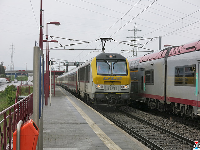 De Schnellzuch 97 mat der 3011 am Transit iwert de Balkan, hei zu Schëffleng (Photo: 10.05.2014 René Birgen)