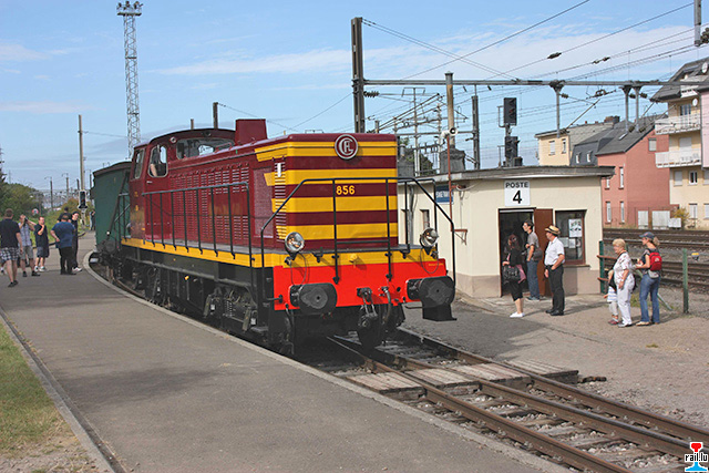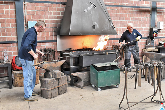 Am Sonntag organisierte der Train 1900 im Fond-de-Gras seinen traditionellen Tag der offenen Tür. Besondere Attraktion waren heuer zwei von 1604 Classics mustergültig restaurierte Dieselloks: Die Ex-CFL 856 (Brissonneau & Lotz) sowie die Ex-CFL 455 (Deutz). Die 856 führte mehrere Züge zwischen Fond-de-Gras und Petingen und begeisterte die Fans mit dem urigen Klang ihres MGO- Motors. Die Beschäftigten von Proactif erläuterten den Besuchern die Projekte, an denen sie zurzeit arbeiten: Ein Uerdinger-Triebwagen, ein preussischer Abteilwagen sowie eine Bt-Dampflok vom Typ Meiderich, welche als Exponat hergerichtet wird. Zudem demonstrierten mehrere Schmiede ihre Kunst.