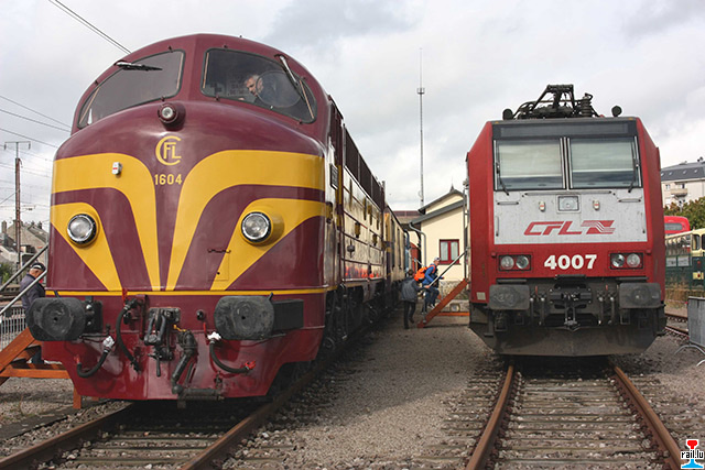 'Porte Ouverte' vun 5519 a.s.bl. zu Bétebuerg, den Week-End vum 1. an 2. Oktober 2016, wor 1604 (niewend der BB 3608 an 1818) mat der CFL 4007 an énger 3000 ausgestallt (Photo: 1.10.2016 Guy Pettinger)