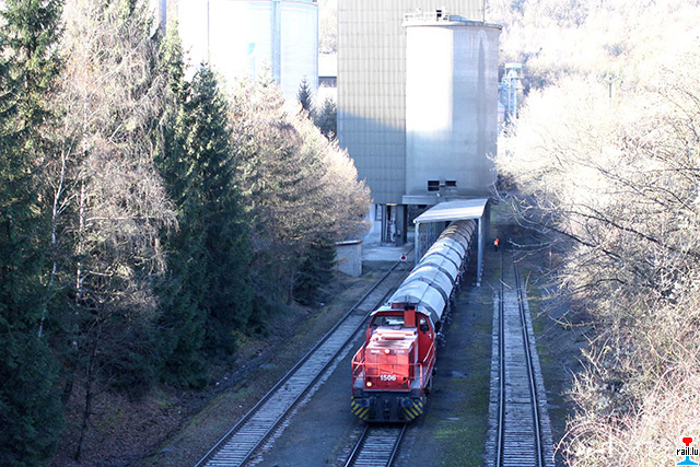 och samsdegs gëtt an den Langengronn gefuer - CFL Cargo 1506 (die léscht roud am Land) ënnert der Verlade-Anlag (Photo: 3.12.2016 Guy Pettinger)