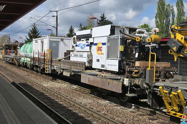 Während der Gleispär Beetebuerg - Esch goufen zu Näerzeng an am Dräieck Brucherbierg – Scheierbësch och d’Drainage gebotzt. Den Aarbechtszuch ass iwwer Nuecht op Gleis 3 laanscht de Rëmelenger Quai garéiert ginn. (Photos: 18.4.2017 René Birgen)