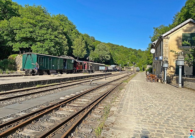 De Buffet de la Gare, mat senger schéiner Terrass, huet awer elo schonns Samschdes a Sonndes tëscht 14:00 an 19:00 Auer op. Bei den Dampzich muss een awer iwwert www.luxembourg-ticket.lu reservéieren, fir kënne matzefueren. D’Voituren ginn esou ageriicht, dass eis Gäscht sech net ze no kommen, esou dass d’Faarte kënne mat der néideger Sécherheet fir d’Passagéier an dat fräiwëllegt Personal iwwert d’Bün goen. Am Atelier lafen d’Virbereedungen ob déi verkierzte Saison op Héichtouren. Et gëtt z.B. awer och um Kessel vun der Energie 507 geschafft. Bei Proactif hunn d’Aarbechten um preiseschen Abteilwon schéi Fortschrëtter gemaacht. An der Gare gouf en neie Betons PN ugeluecht.