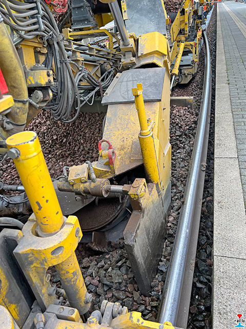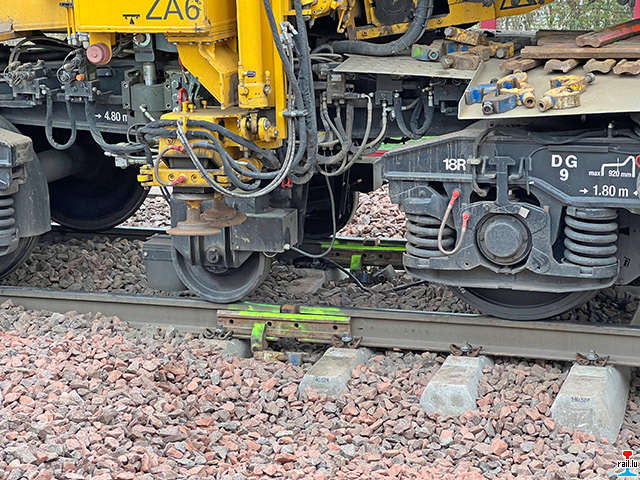 fir genuch Plaz fir de Gleisëmbauzuch ze hunn, den d'Schinnen a senger Aarbechtszone no baussen dréckt fir kënnen d'Schwellen ze ersetzen. (Photos: