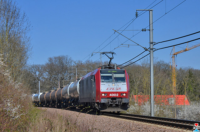 D'4002 mat engem emgeleeten Apacher mat Chemiekesselween déi Phenol transportéiert hunn, iwwert d'Syrener Streck (Photo: 31.3.2020 Tom Lambert)