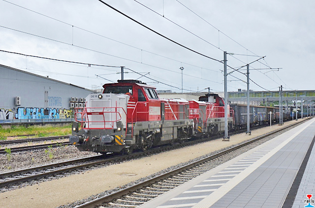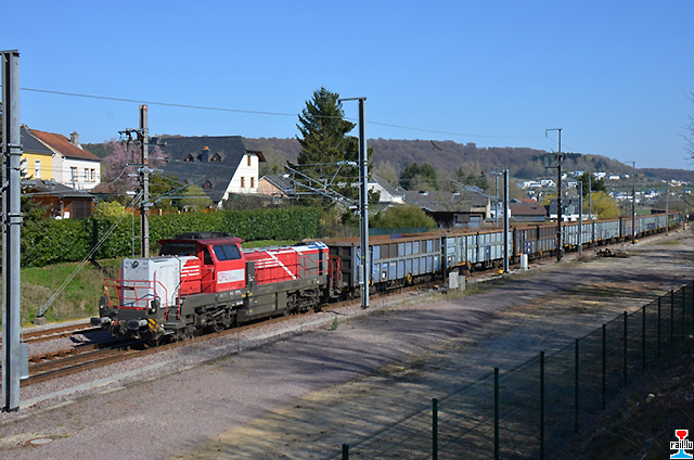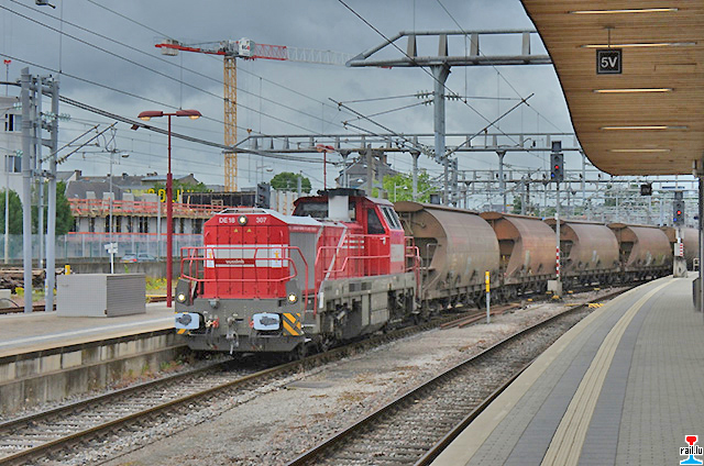 Duerch d'Spärung vum Hollerecher Contournement, misst d'DE 18 307 mam Käerjenger Sand an d'Stater Gare eran fueren fir do Kapp ze maachen an schlussendlech weider op Beetebuerg ze fueren. (Photo: 6.6.2020 Tom Lambert)