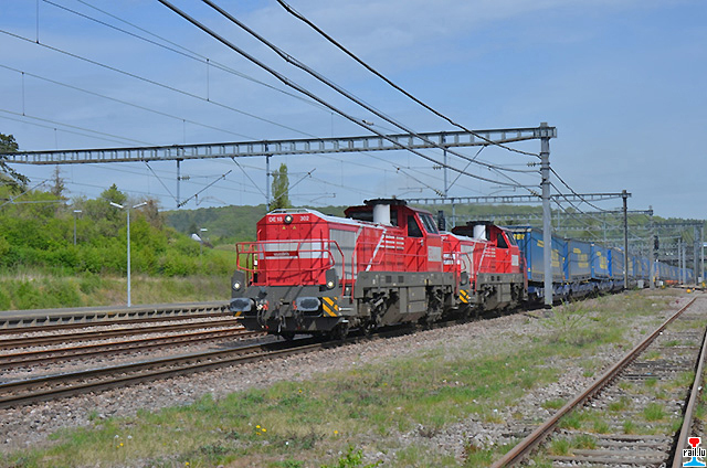 Eng DE18 un engem Gremberger, normalerweis ass deen Asaz den 4000er iwwerlooss, mee dee Mëtten war d'304 drun. (Photo: 6.4.2020 Tom Lambert)