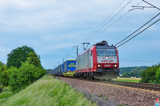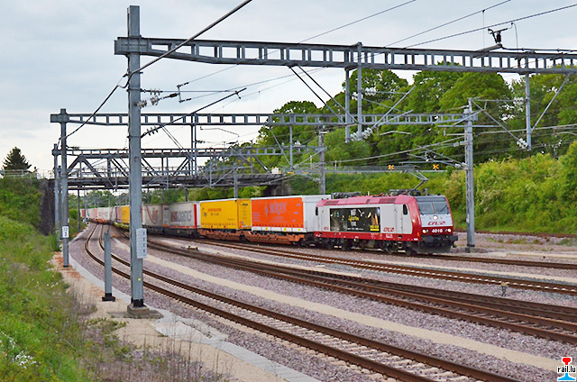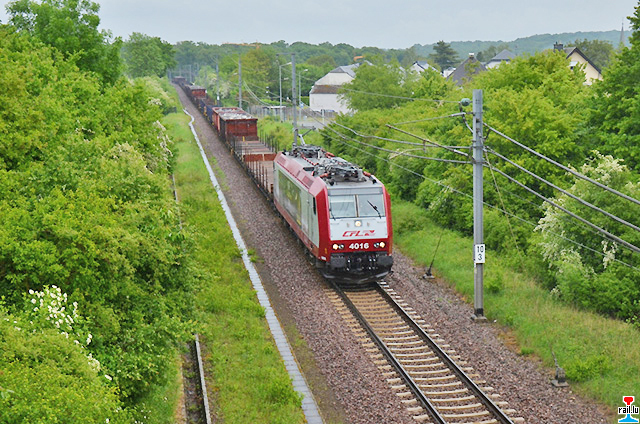 D'4016 ass wuel eng vun den raren Maschinnen déi mat hirer Werbung ( vum Light@Night Festival ) duerch d'HU komm ass. Säit dem 10. Abrëll fiert se erëm, hei wor se fir d'Cargo un engem Gremberger. (Photo: 9.5.2020 Tom Lambert)