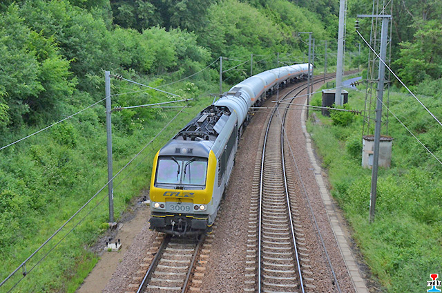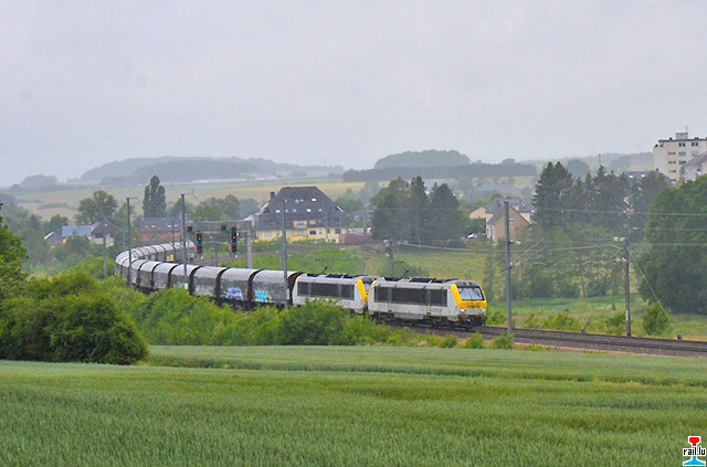 Duerch d'Spärung vun der L60, missten sämtlech Sibeliten an der Päischtvakanz entweder iwwer Dippech ëmgeleet ginn, oder iwwer Frankräich. Sou huet d'3012 (gelount bei Sibelit) den Zeebrugger bis op Athus iwwerfouert, wou eng T13 den restlechen Trajet iwwerholl huet (Photo: 5.6.2020 Tom Lambert)
