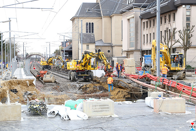 Mise en place d'un passage souterrrain, remplaçant les passages à niveau à Schifflange (Photos: 2.4.2018 jmo)