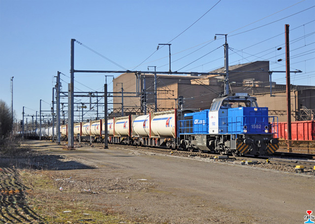 Die CFL cargo 1582 mit dem Zementzug in Esch/Schifflange: Abfahrt um 10h54 (Photos: 7.3.2011 Mike Wohl)