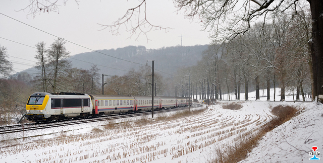 L'IR 116 luxembourg - Liers tracté par la 3014 passe devant le pittoresque