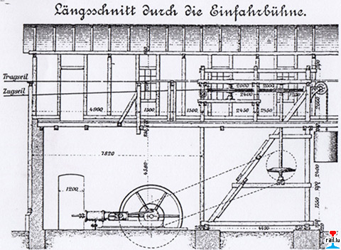 Einfahrbühne der Drahtseilbahn (System Otto) 1887 der Luxemburger Hochöfen in Esch/Alzette (Stahl und Eisen N° 9 1887)