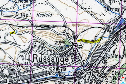 Russange - Rüssingen PN Nr 10, mit im Hintergrund das Schutznetz der Seilbahn Houtte (Collection: Marcel Schlim)