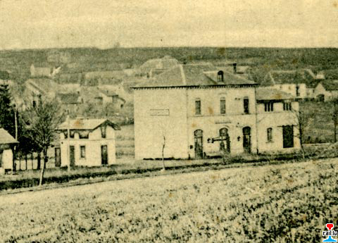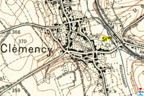 Clemency - L'ancienne gare (à la gauche le Bâtiment de la douane - à la droite le Bâtiment des recettes) et la nouvelle gare (Détail