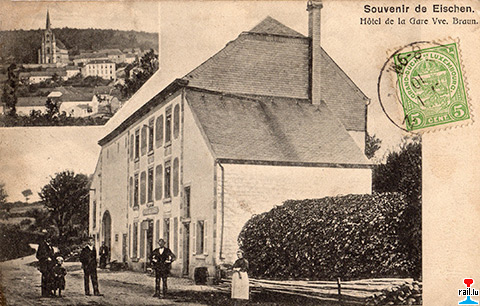 Hôtel de la Gare, Eischen - Vve Braun - vers 1910 (Carte postale: A. Weber, phot., Ettelbrück; Collection: jmo)