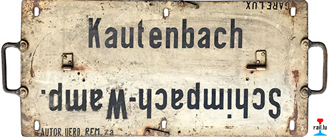Zuglaufschild - Zuchlaafschëld Kautenbach - Schimpach-Wamp. (Collection: rail.lu)