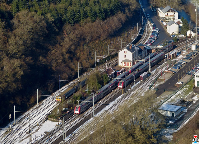 Zugbegegnungen im Halbstunden - Takt von Montags bis Freitags in Kautenbach (Photo: 4.2.2015 10.30 Uhr Hans de Rond)