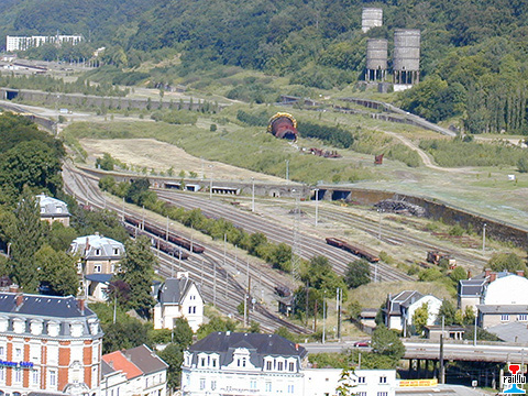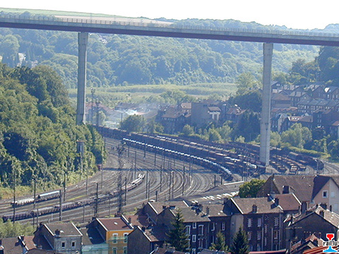 Gare Longwy, direction Herserange - avec au fond le STUL (Photos: 21.07.2000 jmo)