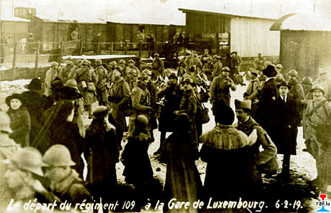 Le départ du régiment 109 de l'Armée française à la Gare de Luxembourg