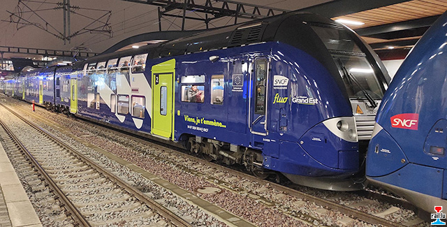 Déi renovéierte SNCF Z24504 an Z24503 fluo an der Stater Gare (Photos: 17.12.2024 Romain Schwartz)