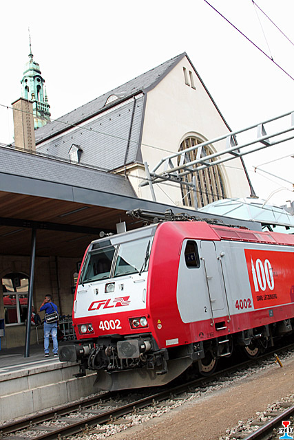 CFL 4020 avec nouvelle publicité "100 Joer Gare Lëtzebuerg" (Photo: Nico Berté. 5.09.2012)