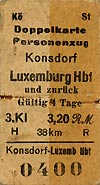 Doppelkarte Personenzug Konsdorf-Luxemburg