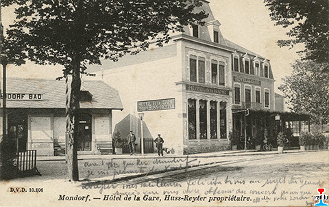 Bahnhof Mondorf-Bad - Hôtel de la Gare, Mondorf - vers 1903 (Carte postale: D.V.D. 10.106; collection: industrie.lu)