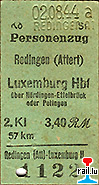 Fahrkarte (2. Klasse) für Personenzug Redingen (Attert) - Luxemburg über Nördingen - Ettelbrück oder Petingen - 2.8.1944 (Collection: jmo)