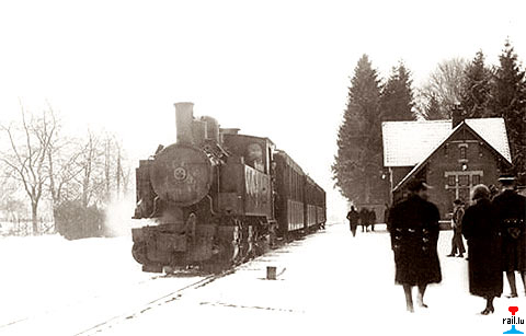 Bahnhof Senningen: Personenzug mit Mallet-Lokomotive (Foto: 17.02.1938; Collection: